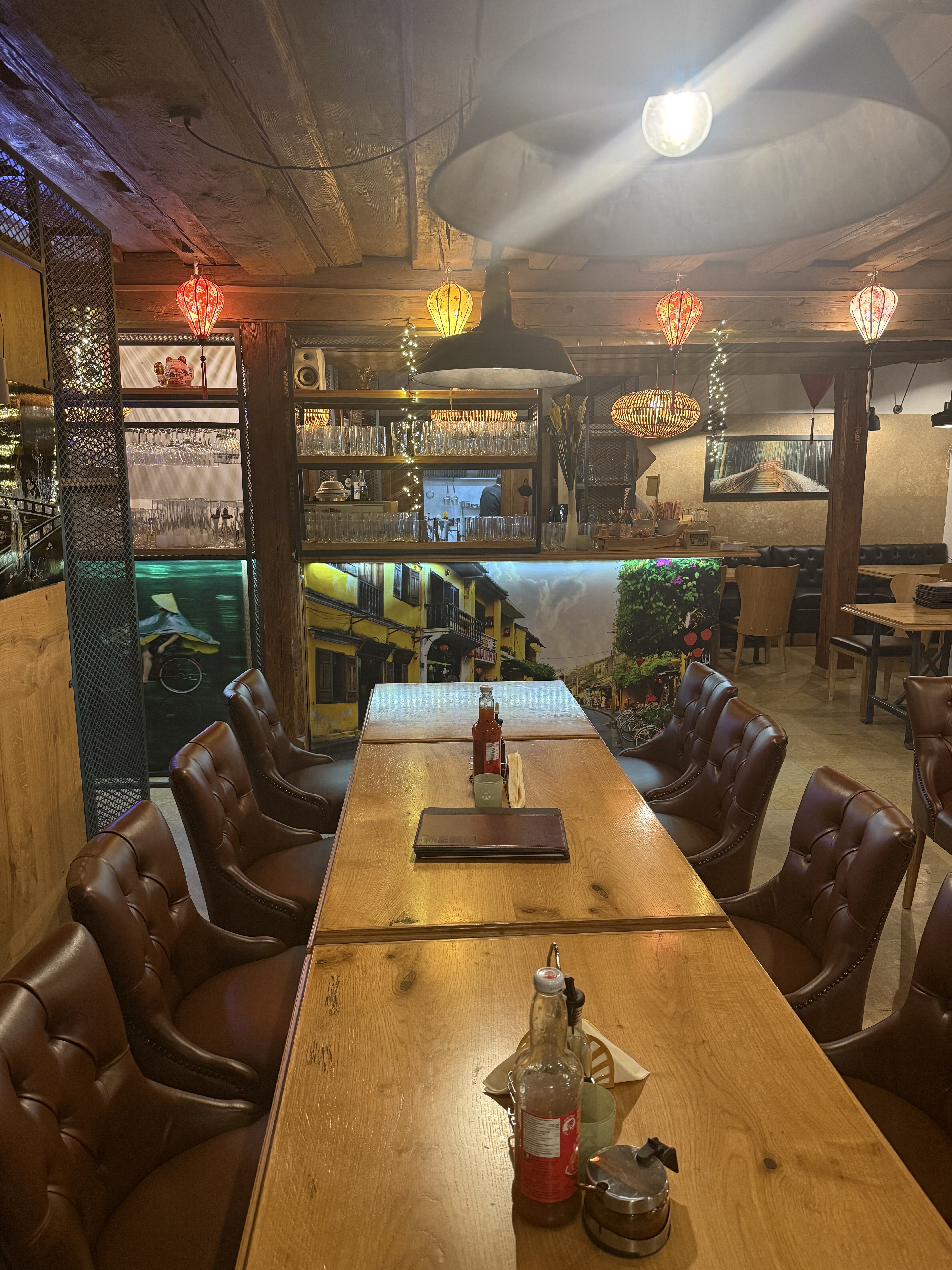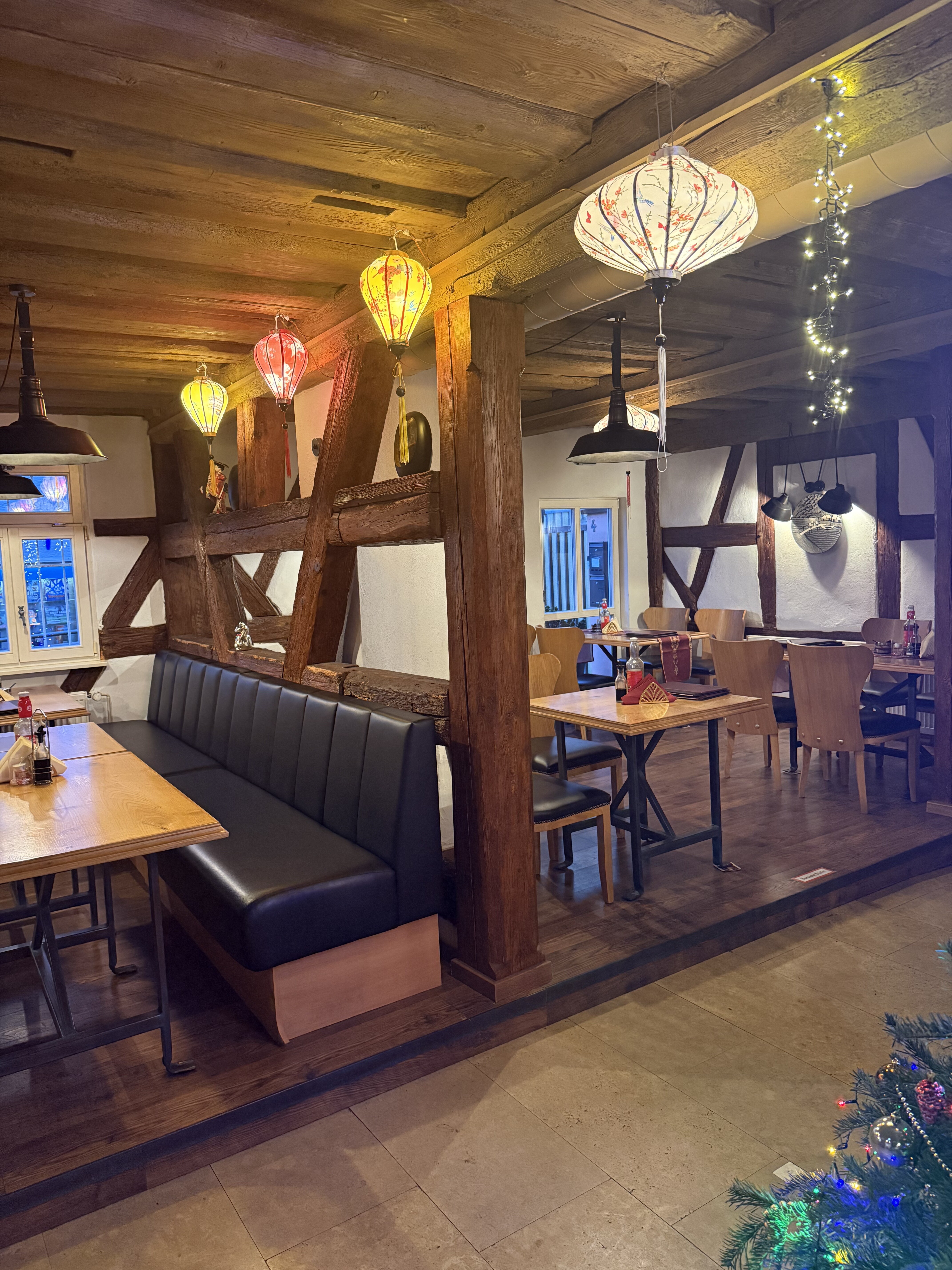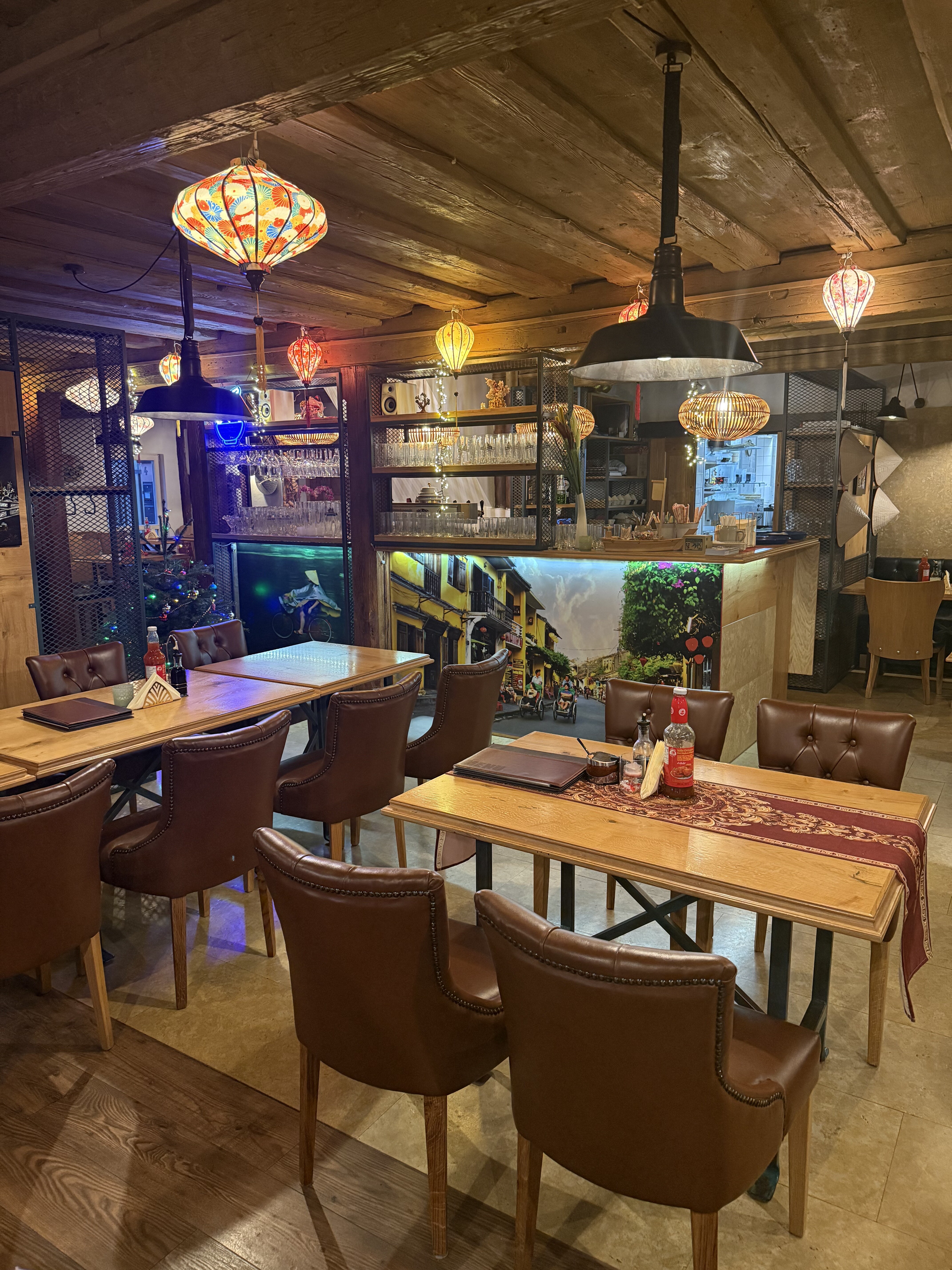 Einladend und stilvoll – das Ambiente von Hue Asia Food Fusion verbindet rustikale Gemütlichkeit mit asiatischer Raffinesse. Warme Holztöne, kunstvolle Lampen und liebevolle Details schaffen eine Atmosphäre, die zum Verweilen einlädt. Ob entspannter Abend mit Freunden, festliches Dinner oder ein besonderer Anlass – Hue bietet den perfekten Rahmen für ein kulinarisches Erlebnis, das in Erinnerung bleibt.